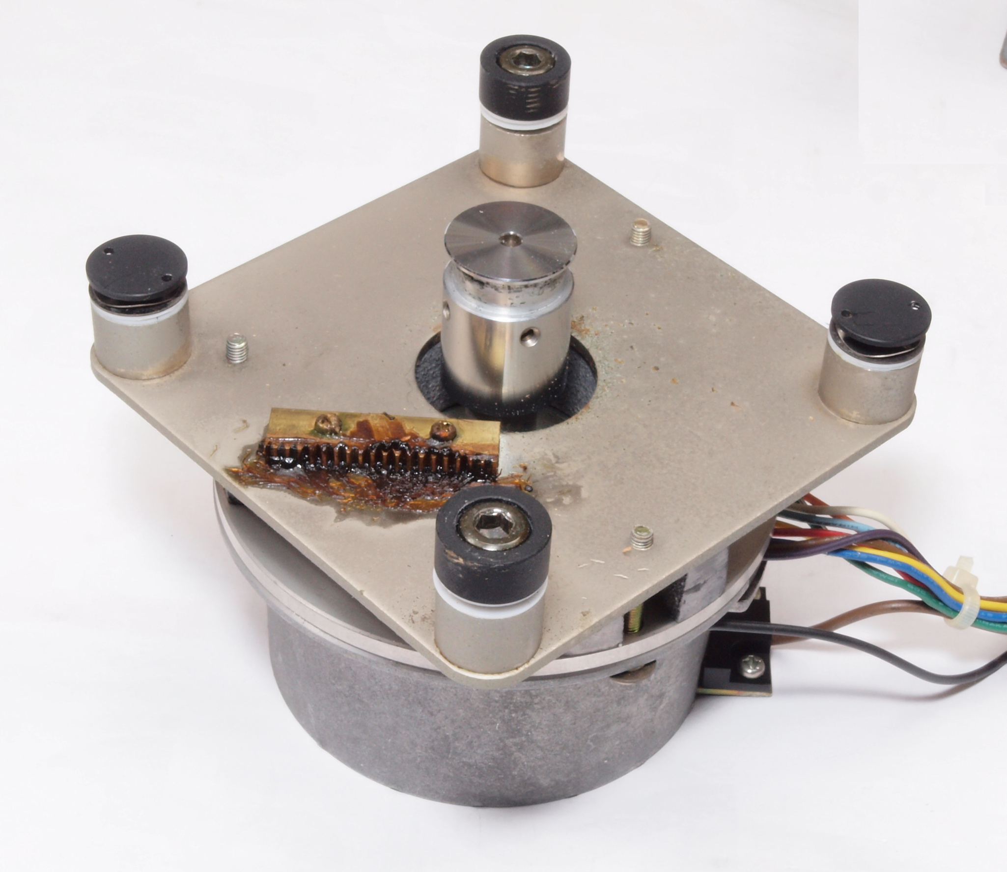 | W4. 修理前 モーター、基板、アーム架台を取り本体下から。 | ||||||||||||||||||||||||||||||||||||||||||||||||||||
