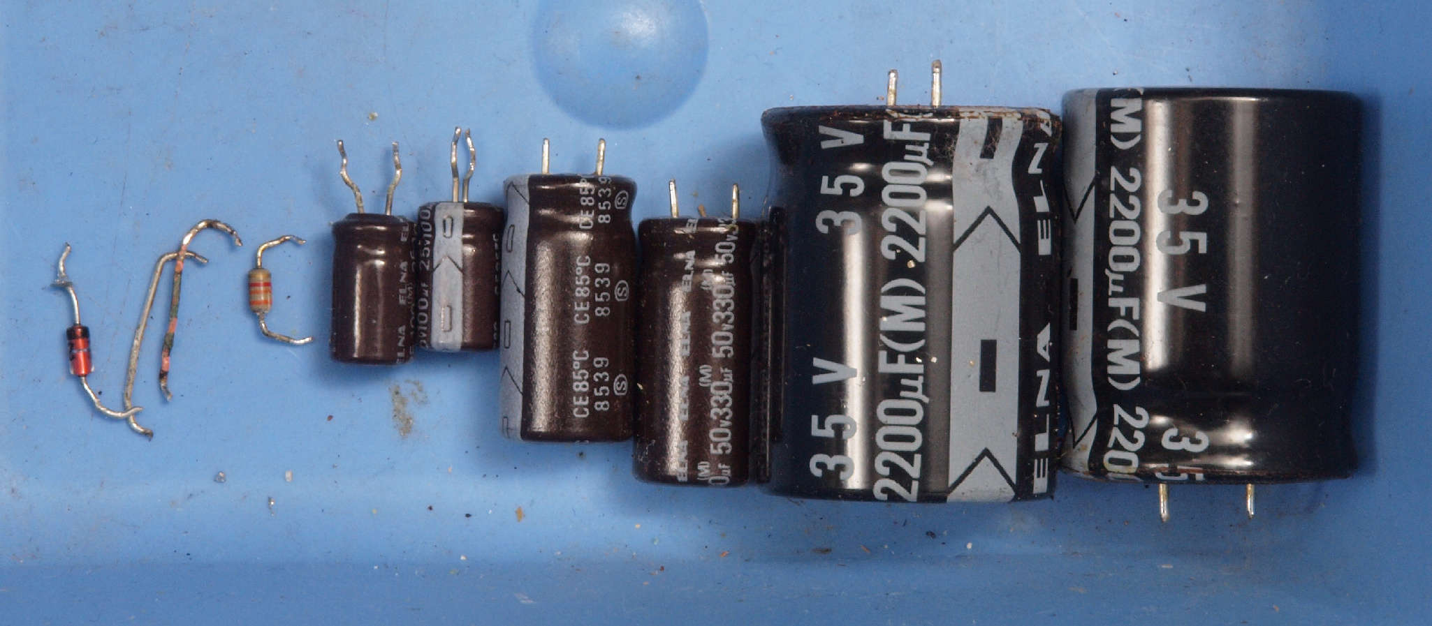 • 電解コンデンサー(オーディオコンデンサー使用)        6個。