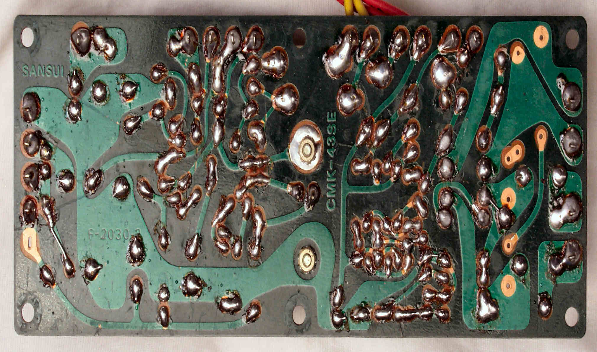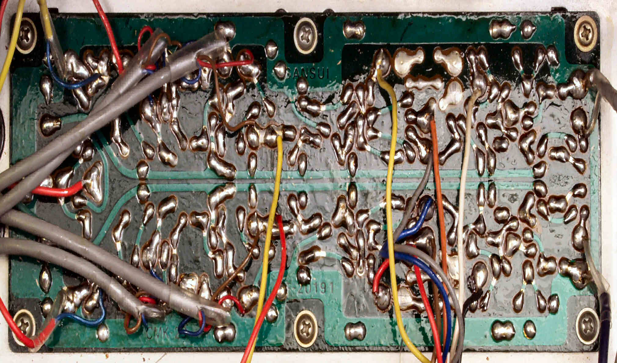 | C82. 修理前 SW基板裏、手付けなので劣化は非常に少ない | ||||||||||||||||||||||||||||||||||||||||||