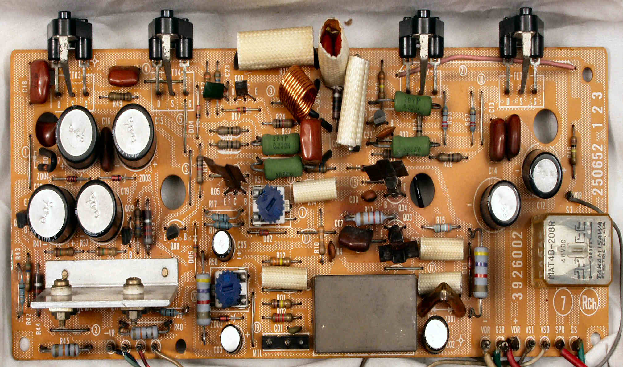 C2A−1. 修理前 Rドライブ基板、熱の為反り返った。