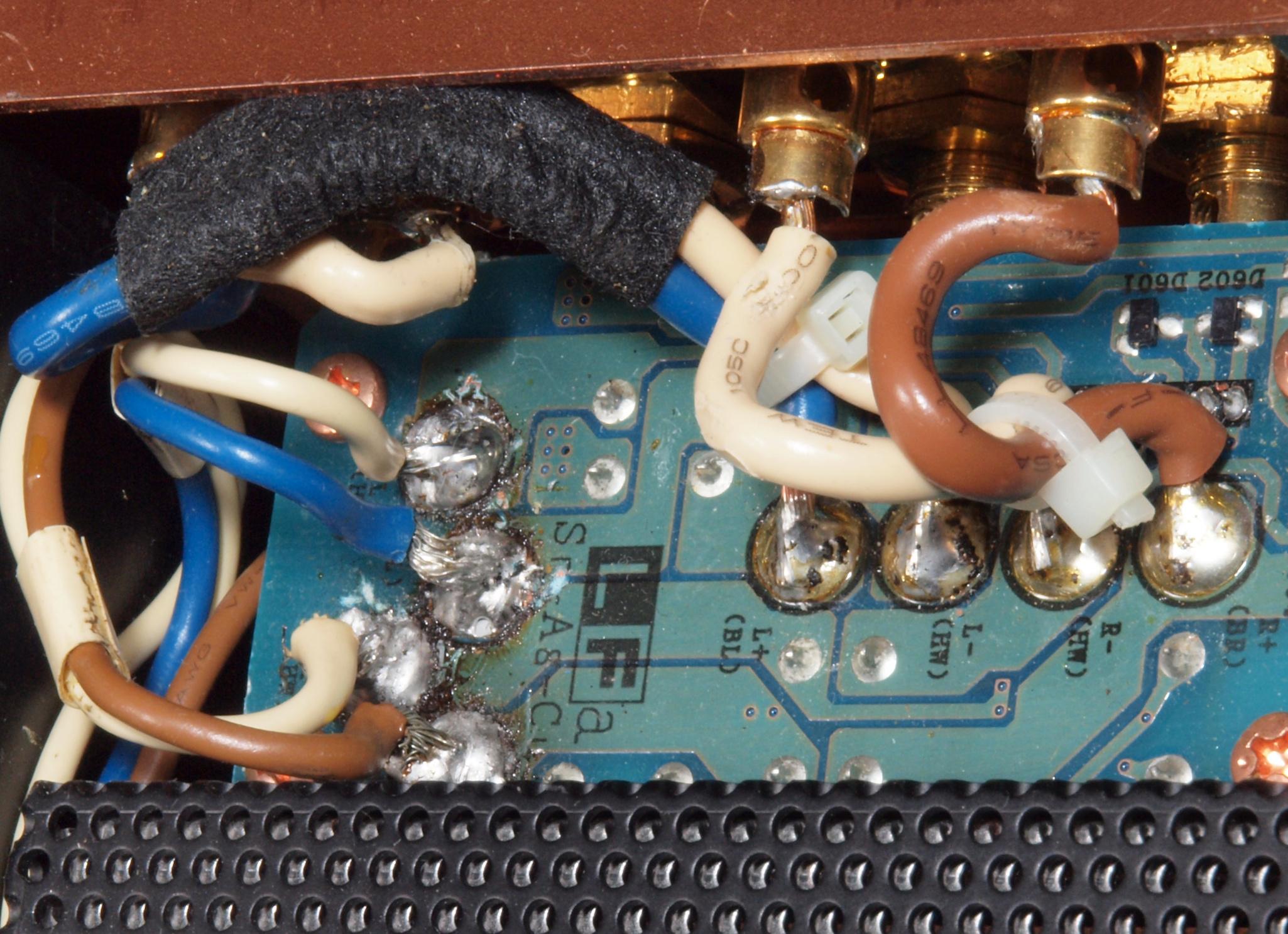 | CA2. 修理中 3Pインレット、SP出力接続端子裏。 |