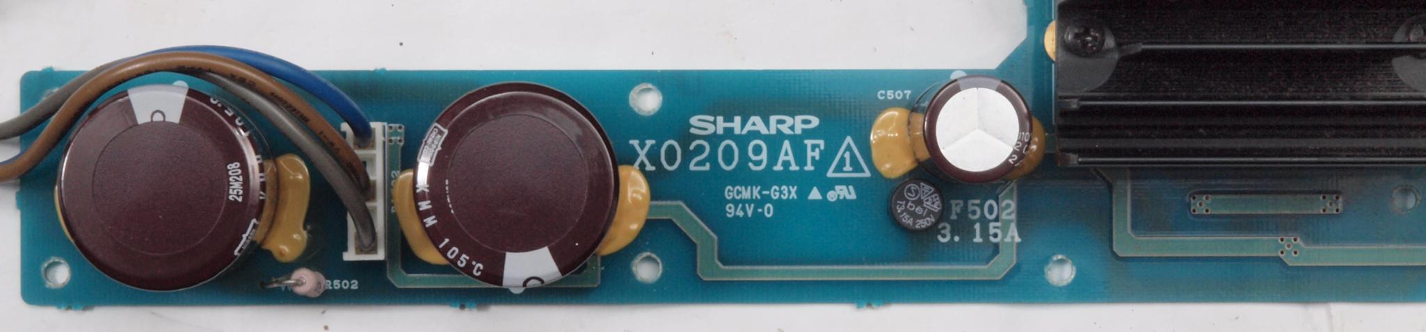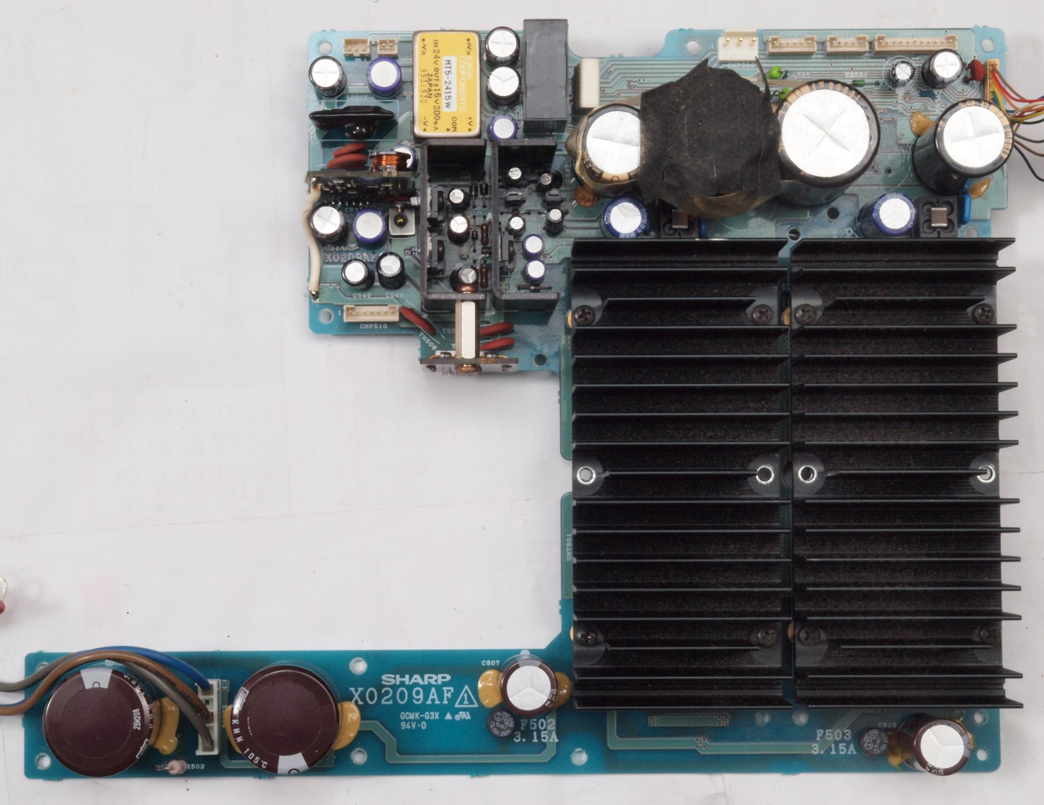 | C51. 修理中 電源フイルター基板。 電源ヒューズは15A、 100V×15A=1.5KVA。 |