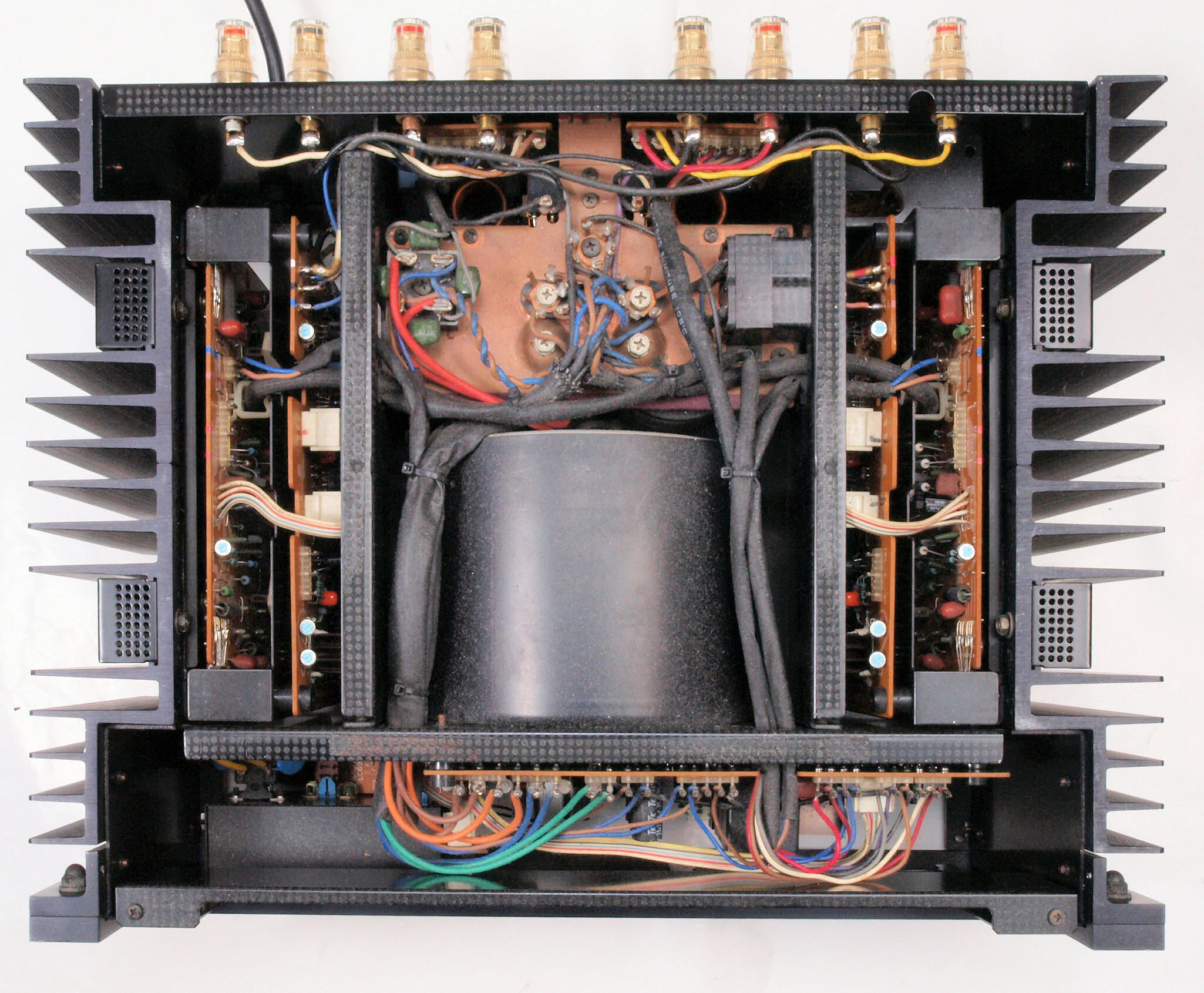 | A18. 点検中 上下蓋を取り、上から見る。 電源ブロック電解コンデンサー下周り配線を見る。 | ||||||||||||||||||||||||||||||||||||||||