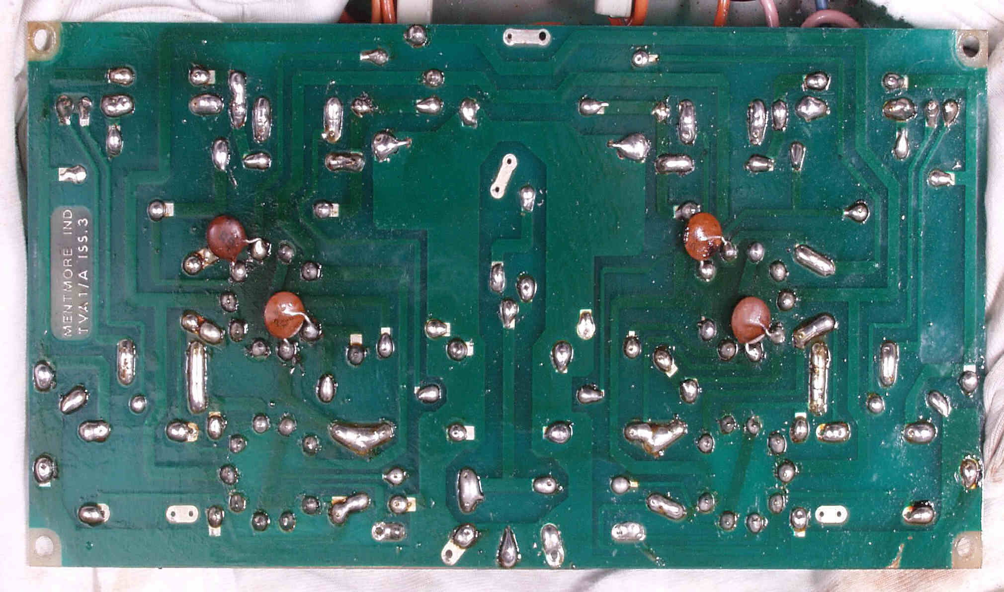 | A32. 修理前点検 前段AMP基板裏へ半田付け? 殆ど素人の仕事! | ||||||||||||||||||||||