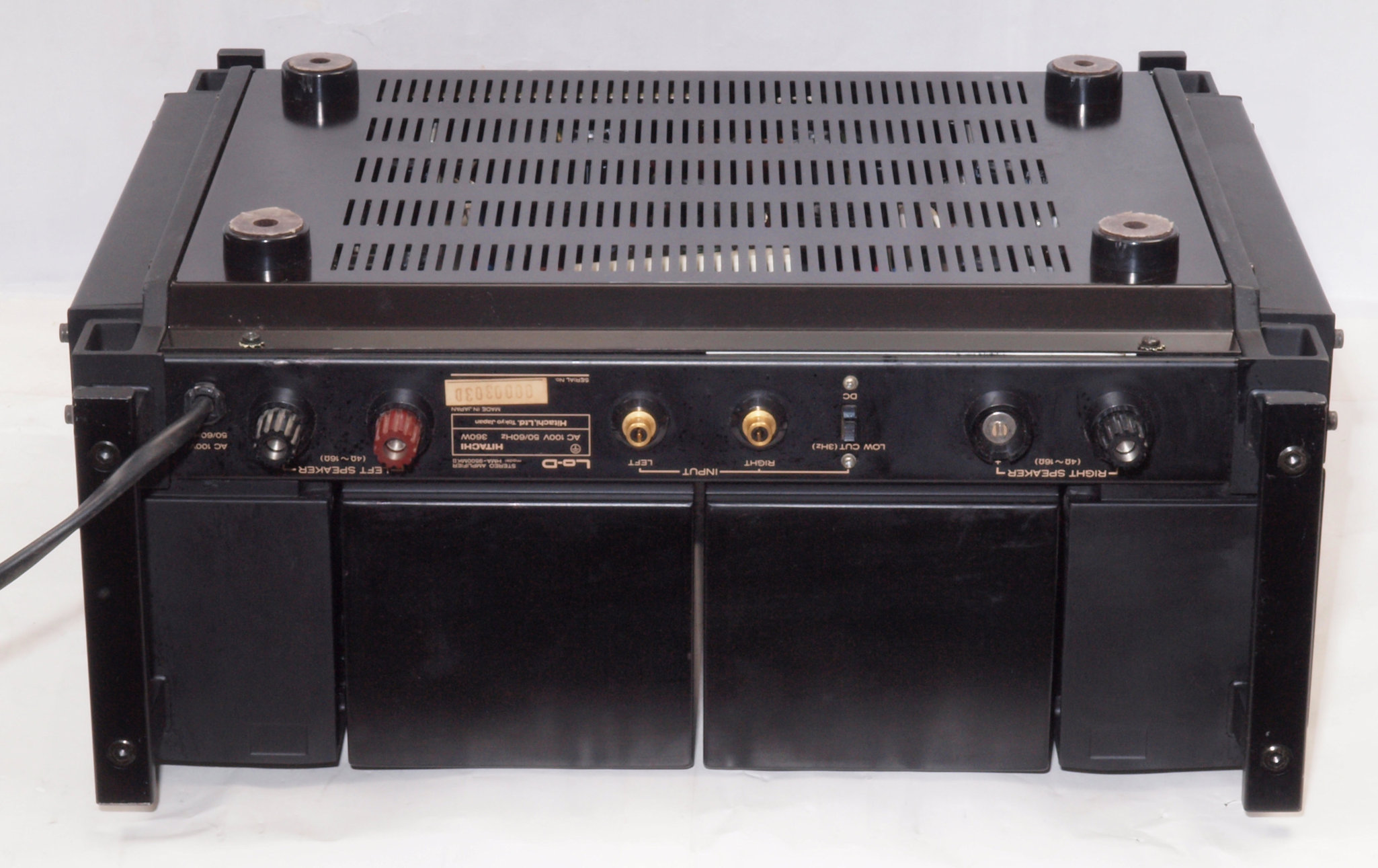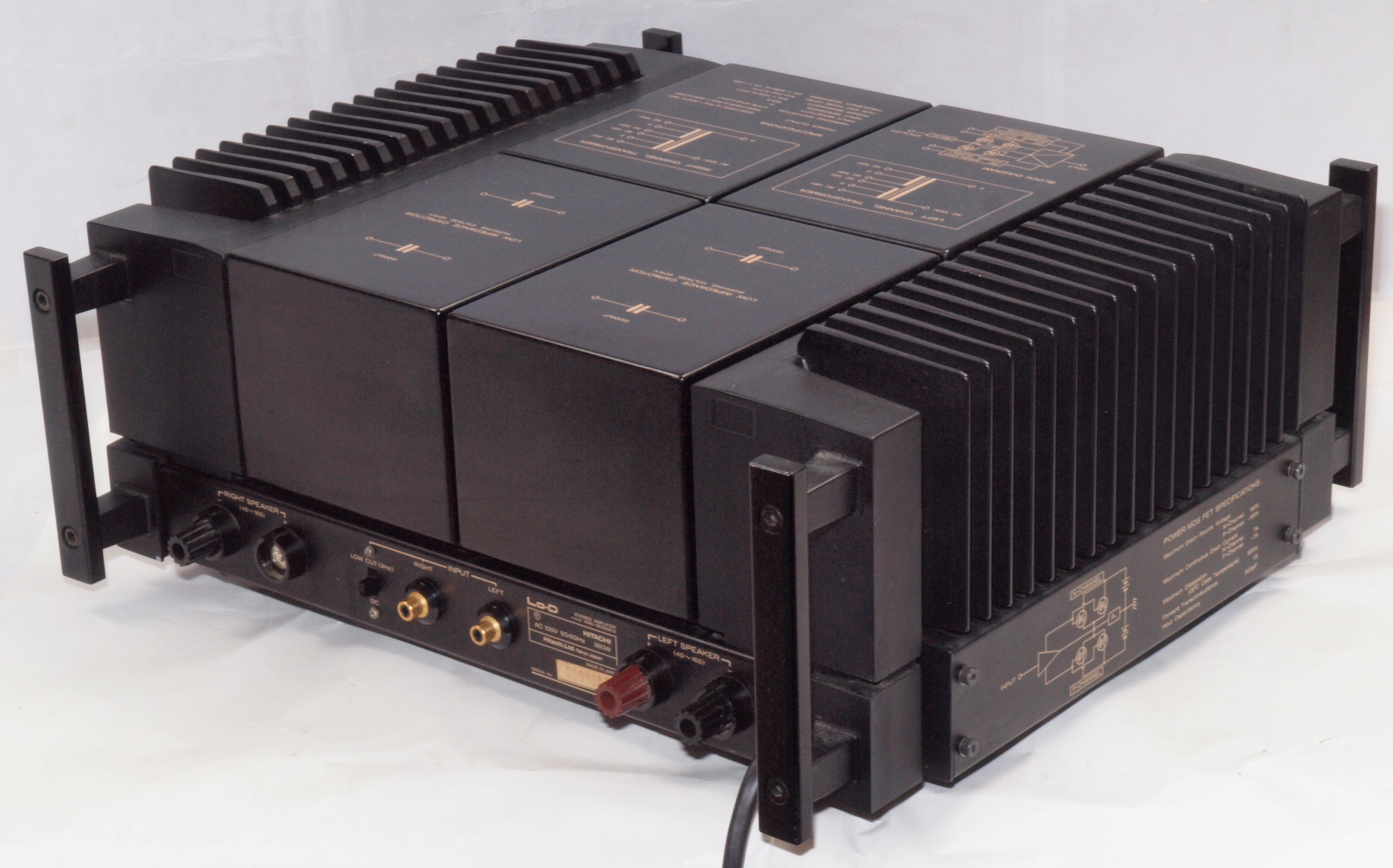 F. 修理費 ,000円 オーバーホール修理。 但し、最終測定時に結果が悪くて、終段FET(電界効果トランジスター)交換費用は別途。 Y. ユーザー宅の設置状況 S. HITACHI Lo−D HMA−9500mkU の仕様(マニアルより) |