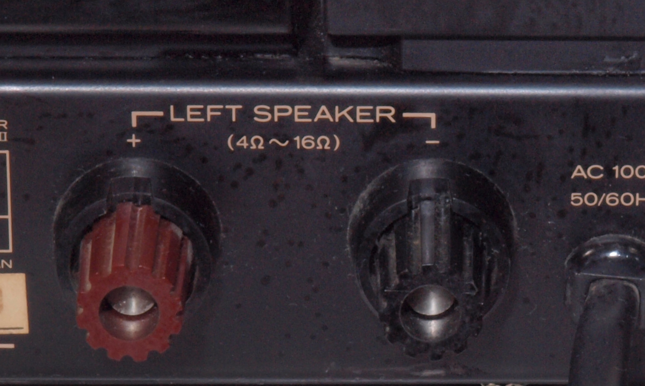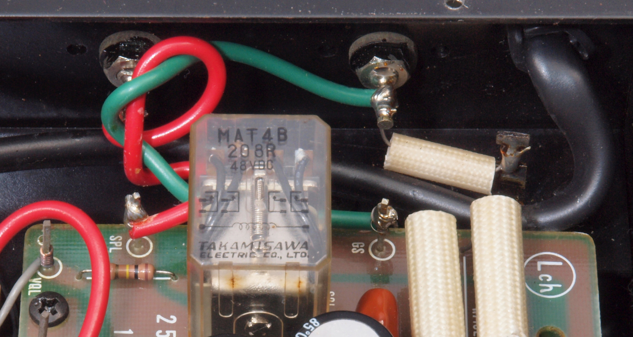 | A76. 点検中 R−SP端子。 WBT−0735に交換可能です、但し既存の取り付け穴が見えます。 |