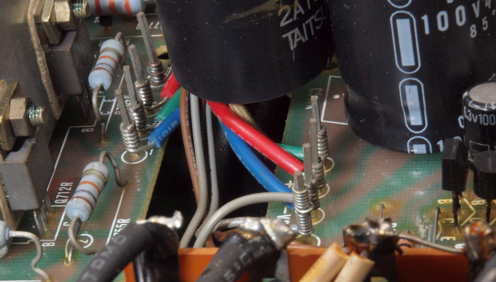 CC5. 修理前 R側ドライブ基板−電源基板へのラッピング線。