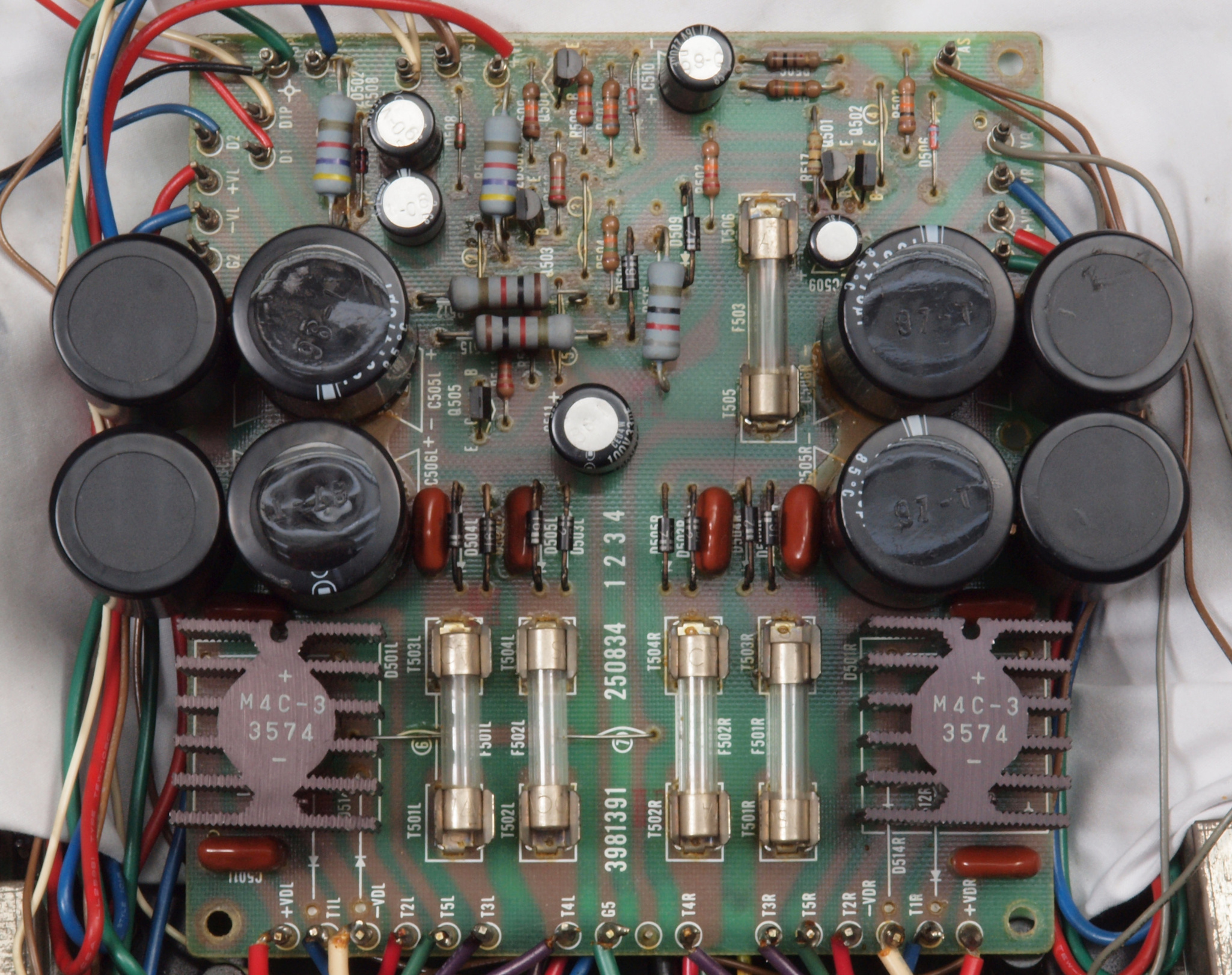 ヒューズ入り抵抗全部、電解コンデンサー11個、TR(トランジスター)2個交換、モジュール修理交換部品は除く。